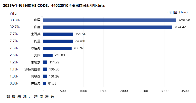据印度尼西亚海关最新数据显示,2025年1-9月果壳炭、坚果炭,椰壳炭类产品(HS code:44022010)出口量为16.39万吨,同比增长10.03%。到伊拉克的出口量排名第一为3.27万吨,同比下降1.4%,排名第二的为沙特阿拉伯1.97万吨,同比增长8.9%,排名第三的为黎巴嫩1.87吨,同比增长50.48%。