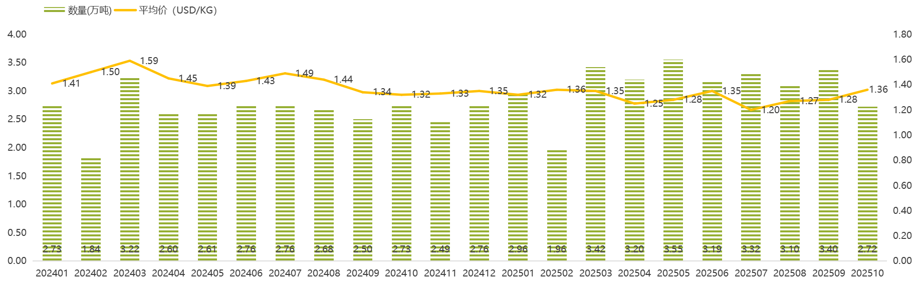10月出口量虽小幅回落,但出口额与均价同比双升,2025年1-10月累计出口量已达去年全年的97.3%,预计全年出口规模将超2024年。