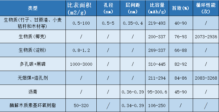 因此,在选择前驱体时首先要考虑的是成本、供应量与是否易于获取和保存,其次才考虑生产出来的硬炭负极的性能,包括克容量、首次循环库伦效率、循环性能与是否需要提纯等。