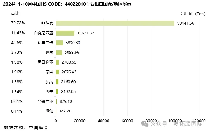据菲律宾海关最新数据显示,2024年1-10月壳炭、坚果炭,椰壳炭类产品(HS code:44022010)出口量为10.06万吨,同比增长21.2%。其中,到中国的出口量为8.14万吨,同比增长28.8%。
