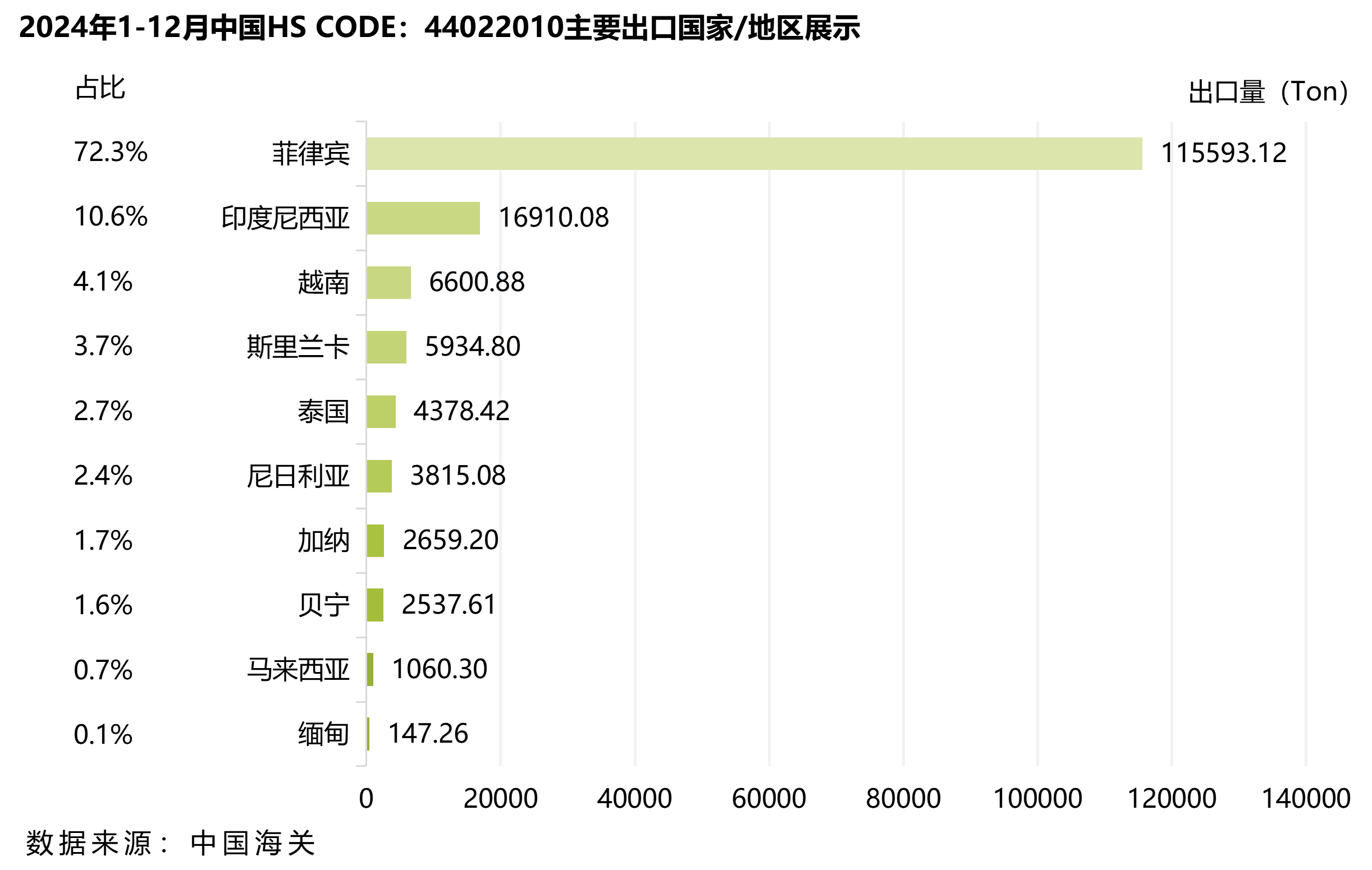 2024年1-12月中国进口椰壳炭主要进口国家展示