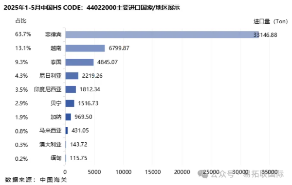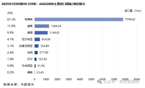 据中国海关最新数据显示,2025年1-5月果壳炭或果核炭产品(HS code:44022000)进口量为5.21万吨,同比下降28.7%。其中,菲律宾进口量最高,达到3.31万吨,同比下降36.9%;其次是越南的进口量,达到6799.87吨,同比增长291.5%;泰国的进口量排在第三位,达到4845.07吨,同比增长408.9%。